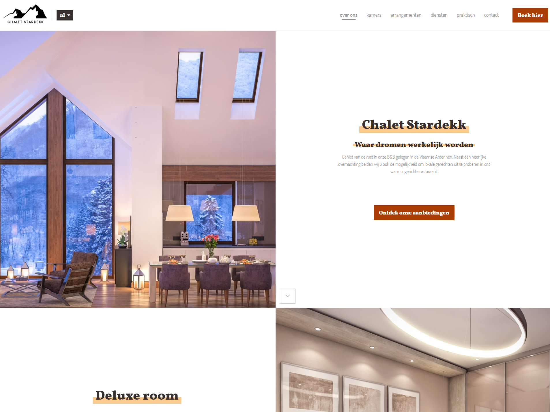 Are you searching for a new, modern-looking website? The Blitz template offers you a clear and elegant overview of your accommodation. Easily create multiple pages in order to establish a clear structure and to stimulate conversion.